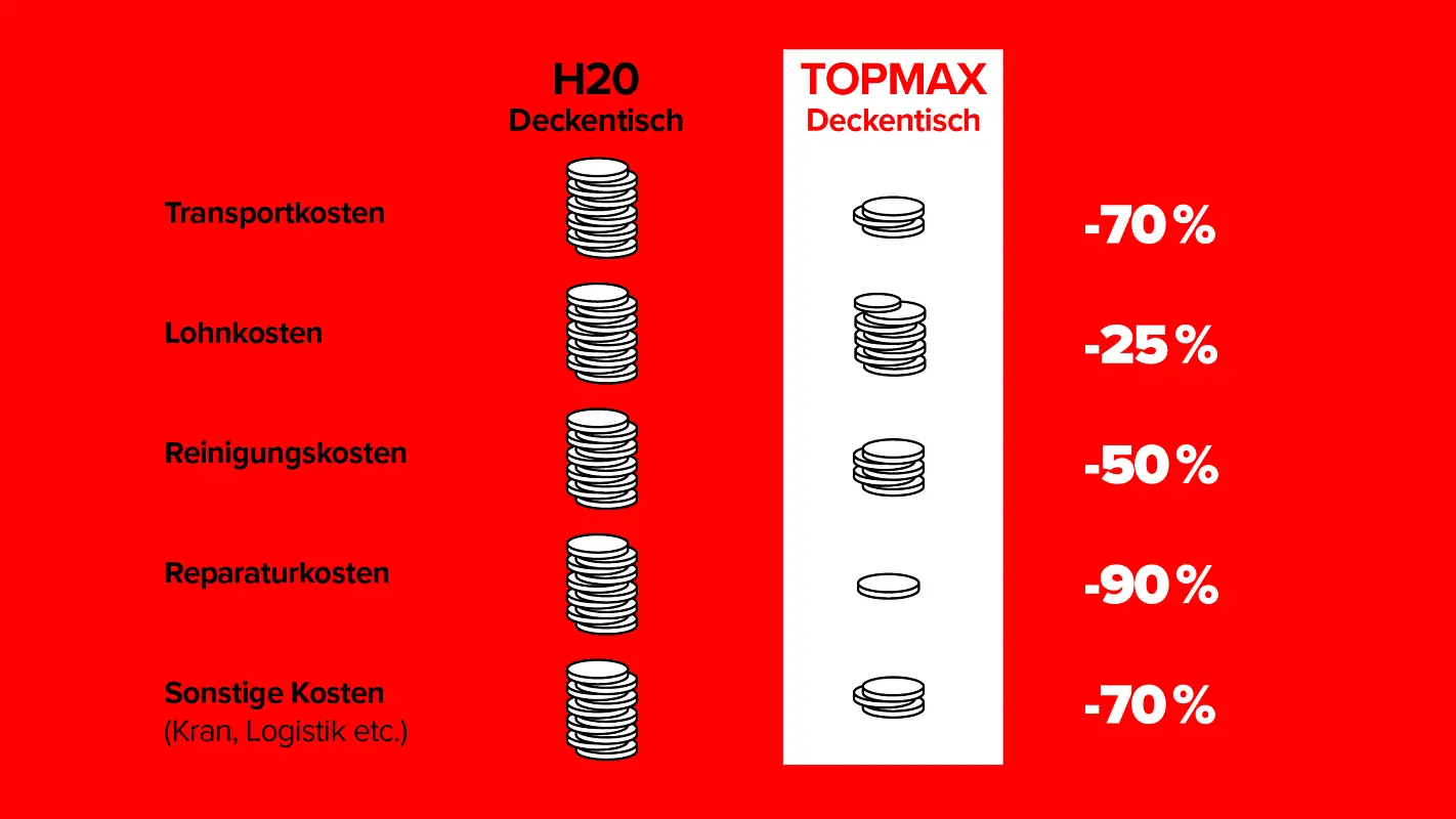 - Anheben, Ausrichten, Absenken und Transportieren von einzelnen TOPMAX Deckentischen