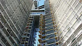 Das Stahlrahmen-Gerüstsystem BOSTA 100 ist die bewährt gute Lösung für große Höhen und hohe Lasten bis Lastklasse 6.