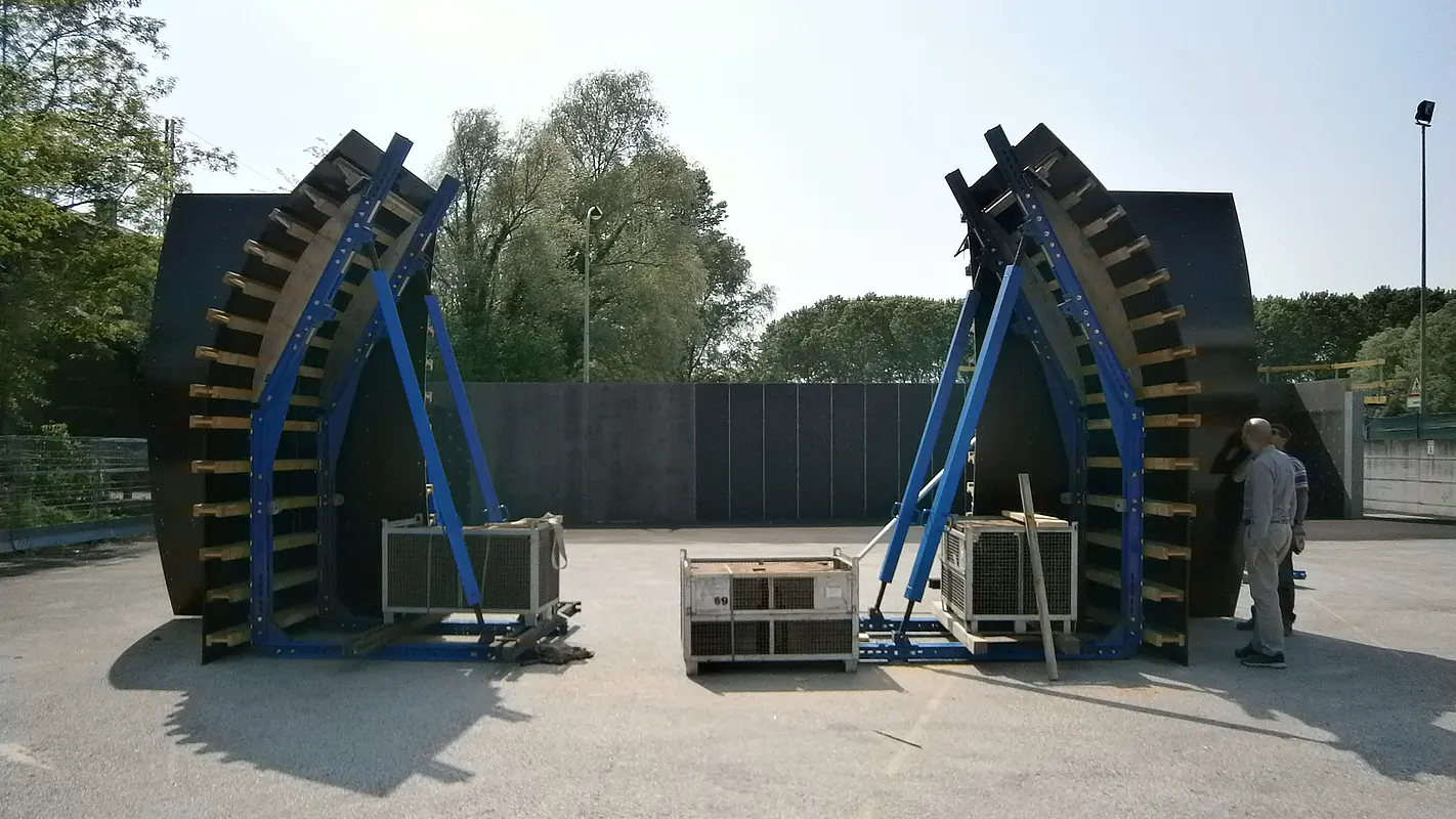 Viele der Projekte bleiben durch die Verwendung von Standardelementen kostengünstig. Hünnebeck kann auf weitreichende Erfahrung mit maßgeschneiderten Lösungen zurückgreifen. Außerdem bieten wir Prototypmaschinen, die auf die Anforderungen des Projekts angepasst werden. Maßgeschneiderte Tunnelschalwagen sind normalerweise hydraulisch ausschal,- absenk, -verfahr, und einschalbar. Zur Ausstattung gehören z.B. auch Schalungsrüttler oder mobile Betonverteiler. Mit einer Fernbedienung kann der Schalwagen nach Bedarf bedient und versetzt werden.