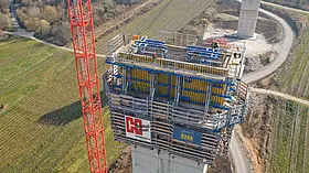 CS 240 ist ein kranabhängiges Kletterfahrgerüst, das als Trag-, Arbeits- oder Schutzgerüst eingesetzt werden kann.