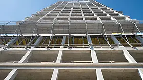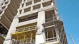- Mit dem Abstützdreieck kann das Konsolgerüst an Gebäuden in Skelettbauweise oder an Fassaden mit großen Wandöffnungen eingesetzt werden
