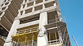 Con solo tres elementos básicos el soporte de andamios FALKO puede adaptarse a todo tipo de construcciones para generar áreas de trabajo seguras.