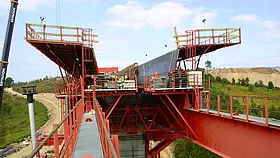 Zowel het overhead als het onderhangende MSS (Movable Scaffolding System) bestaat uit een zelfdragende structuur in combinatie met een projectspecifieke interne en externe bekisting. Beschikbaar voor verkoop en verhuur.