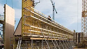ES 24 to wytrzymałe i wszechstronne deskowanie ścienne z belką drewnianą, składający się ze wstępnie zmontowanych elementów R 24.