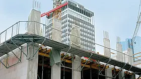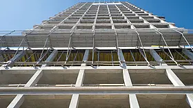 Având doar trei componente de bază, schela în consolă FALKO poate fi adaptată la orice plan de cofrare, oferind zone de lucru sigure.