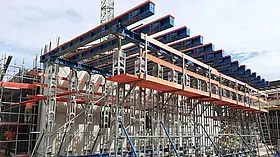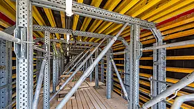 Successful infrastructure projects with the modular INFRA-KIT system; greatest flexibility with just a few components. The system can be used in a variety of applications, e.g. as wall formwork, cantilevered parapet bracket, parapet traveller or shoring for composite, precast and in situ concrete bridges; up to sophisticated structures for tunnels, bridges, Safescreens or self-climbing formwork.