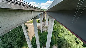 Standardised system components reduce the planning effort and enable quick assembly on site. Can also be used for bridges with