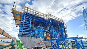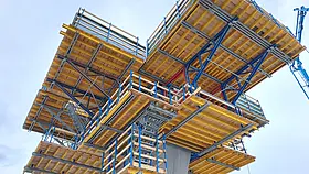 → CS 240 climbing scaffold used to mount the inner and outer formwork for the main pylon