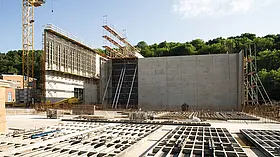 MANTO is a very robust and easy to handle crane-set formwork system for large-area forming of walls.
