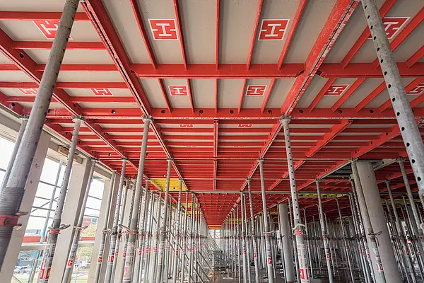 Zum Betonieren von Geschossdecken werden Schalungssysteme benötigt. Sie dienen dazu, den Beton so lange in der richtigen Form zu halten, bis er ausgehärtet ist. Dementsprechend müssen sie eine hohe Stabilität und Traglast mit sich bringen. Da sie zugleich große Spannweiten überbrücken müssen, werden zusätzlich Deckenstützen montiert. Bei der Schalung von Betondecken können verschiedene Systeme zum Einsatz kommen.